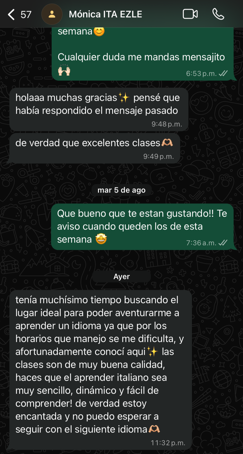 Alumna de nuestro curso de italiano y club conversacional de italiano.